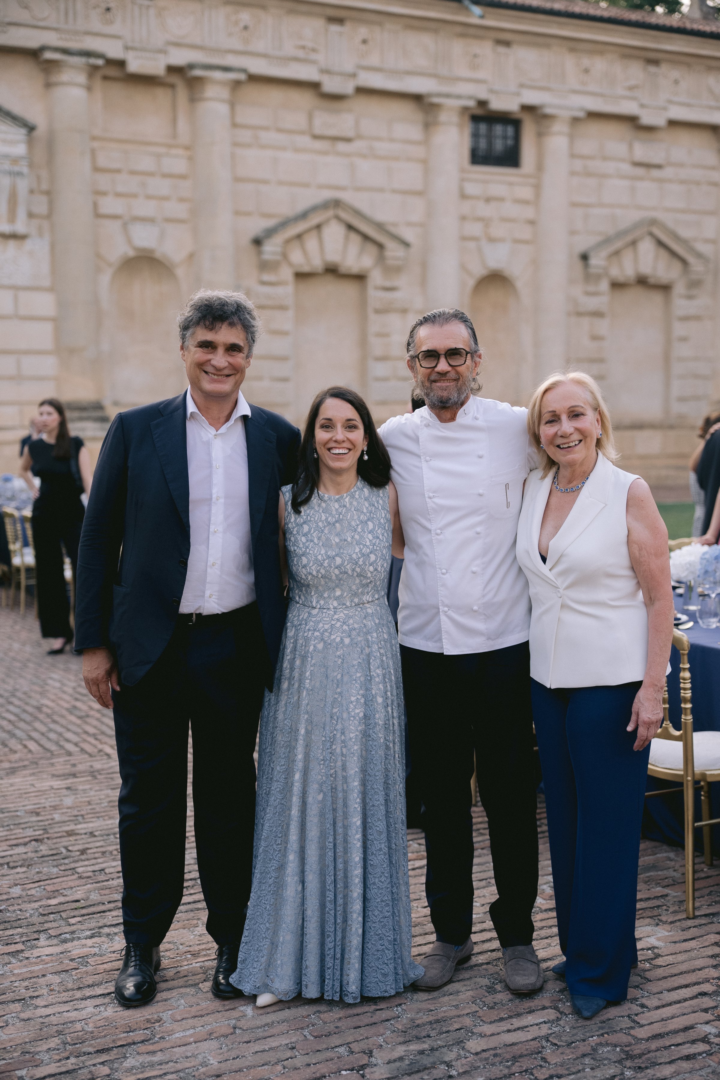 Per l’occasione una cena, firmata dallo chef Carlo Cracco e allestita nel Cortile d’Onore di Palazzo Te, ha accompagnato la degustazione di tutti e tre i vini del progetto. Per la famiglia Mastella Allegrini quella con lo chef Carlo Cracco è un’amicizia pluriennale che trova ulteriore conferma nel fatto che il Ristorante Cracco (Milano, Galleria Vittorio Emanuele, 1 stella Michelin) sarà il primo ristorante italiano ad avere in carta i vini presentati.